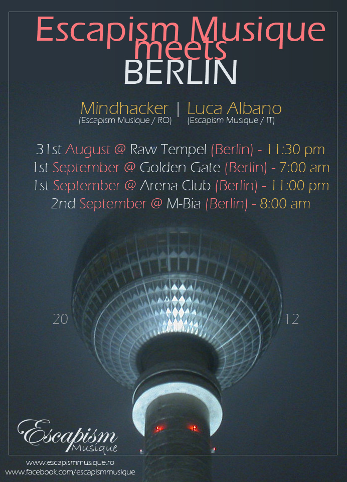 Escapism Musique se întoarce în Berlin după doi ani într-o serie de 4 petreceri în care vor presta Mindhacker (Escapism Musique / Romania) alături de Luca…