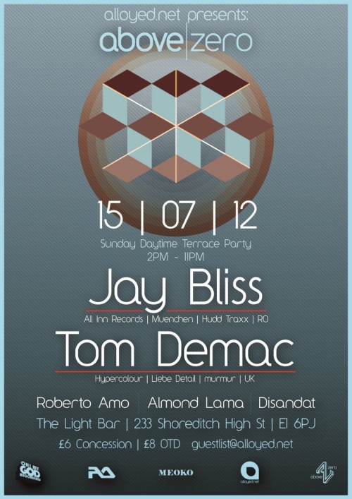 Jay Bliss mixează duminică, 15 iulie, in The Light Bar, din capitala Angliei, alături de Tom Demac, Roberto Amo, Almond Lama si Disandat, în cadrul unei seri AboveZero. Un amănunt interesant al acestei petreceri îl reprezintă ora de începere, 2:00 PM, un adevărat Daytime Terrace Party. Biletele pentru acest eveniment sunt cuprinse între 5 și 8 lire sterline, iar comunicatul oficial al locației vorbește despre una dintre cele mai tari petreceri ale verii in The Light Bar.