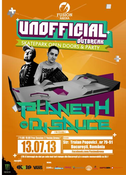 Fusion ARENA UNOFFICIAL OUTBREAK – un eveniment dedicat iubitorilor de cultură și sporturi urbane sâmbătă, 13 iulie 2013, își deschide porțile Fusiona ARENA, cea mai nouă locație din București dedicată tinerilor nonconformiști și iubitori ai culturii și sporturilor urbane.