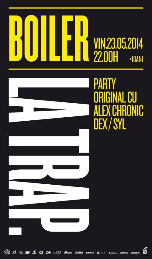 „La Trap.” este un party original Boiler prin care ne dorim să promovăm muzica trap, un nou stil muzical care mișcă orice bootie și experimentează fiecare beat. Ce anume este muzica TRAP? Dacă ai mixa hip-hop, house şi dubstep într-un blender și le-ai accentua cu snares, hi-hats, kicks și un bass puternic, vei realiza ceva ce poate fi denumit TRAP, în cea mai simplă formă a sa.
