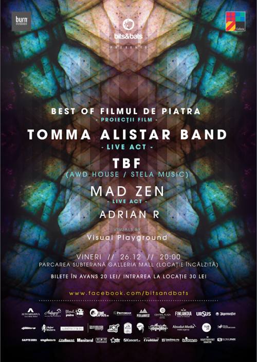 Tomma Alistar & Band (live act), TBF, Mad Zen (live act), Adrian R și Best of Filmul de Piatra (proiecții de filme scurte), vineri 26.12, în parcarea subterana Galleria Mall din Piatra Neamț